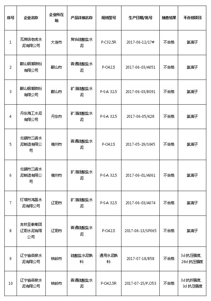 按照《2017年河北省工業產品質量省級監督抽查計劃》安排,省質監局組織開展了2017年第3批工業產品質量省級監督抽查,涉及水泥等24種產品。水泥共抽查了12個地市116家企業生產的116批次產品,主要包括普通硅酸鹽水泥、礦渣硅酸鹽水泥、復合硅酸鹽水泥等。重點檢驗了三氧化硫、氧化鎂、氯離子、凝結時間、安定性、強度等11個項目。經檢驗,共發現2批次產品氯離子項目不合格。