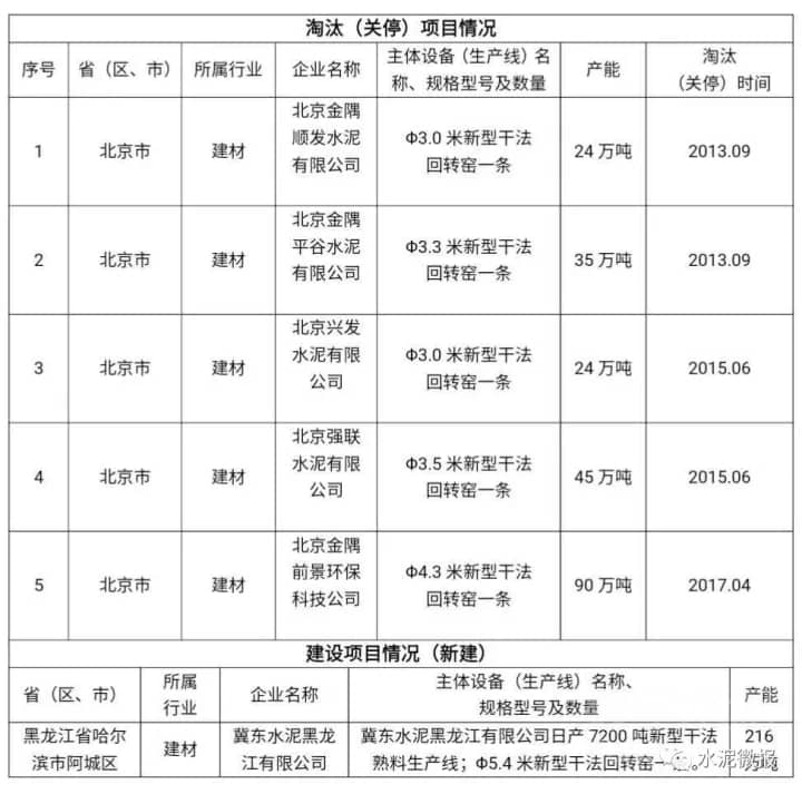 以上5條水泥回轉窯生產線熟料產能指標合計為7267噸/天,折合218萬噸/年。經商請北京市人民政府同意北京金隅股份有限公司關停水泥熟料產能指標轉出,并將《冀東水泥黑龍江有限公司日產7200噸新型干法熟料生產線建設項目產能置換方案》呈報黑龍江省人民政府同意,現予以公告。