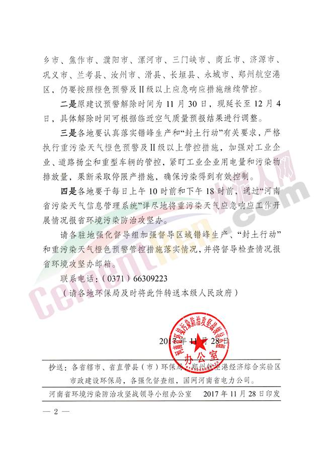 自水泥人網10月30日發布《河南省七十四家水泥企業停限產方案(含特種水泥名單)》(點擊閱讀)后,河北省多區域水泥企業也將再現集體停產。河南省環境污染防治攻堅戰領導小組辦公室于近日發布《關于調整重污染天氣預警響應有關情況的緊急通知》稱:根據河南省環境監測中心、省氣象臺與PM2.5專家組分析研判和最新模式預報結果,預計2017年11月30日夜里空氣質量開始轉差,12月1日至4日,擴散條件較差,靜穩態勢顯著,全省大部分地區將出現中度至重度污染過程,部分城市空氣質量可能達到嚴重污染。因此,經省環境污染防治攻堅辦研究決定: