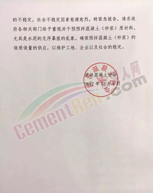 目前,部分預拌混凝土(砂漿)企業(yè)已經停產,部分建設項目已經停工。停產、停工嚴重影響我市城市建設的推進尤其是政策重點項目的進程,造成了工程質量的不穩(wěn)定,社會不穩(wěn)定因素愈演愈烈。特緊急報告,請求政府各相關部門給予重視并干預預拌混凝土(砂漿)原材料,尤其是水泥的無序暴漲的亂象,確保預拌混凝土(砂漿)的保質保量的供應,以維護工地、企業(yè)以及社會的穩(wěn)定。
