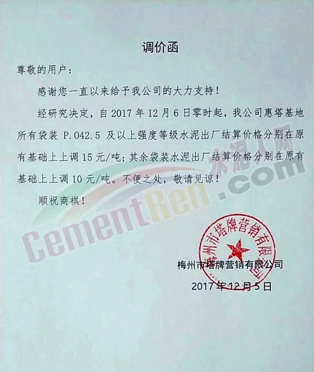 處于南方地區(qū)的華南區(qū)域主導(dǎo)企業(yè)也于昨日發(fā)布了水泥價格小幅上調(diào)的通知: