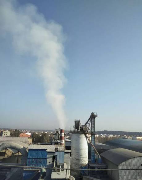 進廠時礦渣微粉含水量大(約10%左右),需通過輸送帶送至烘烤設(shè)備進行烘烤,達到將含水量降至1%以下才符合生產(chǎn)要求。該生產(chǎn)過程中所產(chǎn)生的氣體均需通過布袋除塵過濾后才向外界排放,成分主要是水。由于冬季氣溫低,熱的水蒸氣遇冷凝結(jié)形成水霧。夏季溫度高則無此現(xiàn)象。居民朋友們不必擔(dān)心。