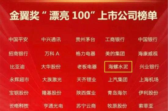 【水泥人網】據海螺集團官網消息 近日,“2017年最具投資價值上市公司”榜單、首屆中國證券分析師金翼獎評選暨2018“漂亮100潛力榜”相繼發布,海螺水泥榮登雙榜,再創輝煌。這是海螺水泥繼名列“2017年中國上市公司市值500強榜單”第74位后,再獲殊榮。