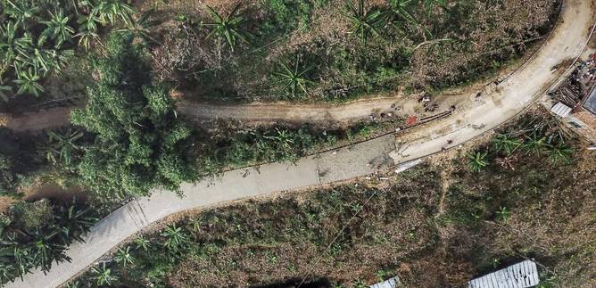 ▲ 硬化后的組組通公路像一條蛟龍在山間