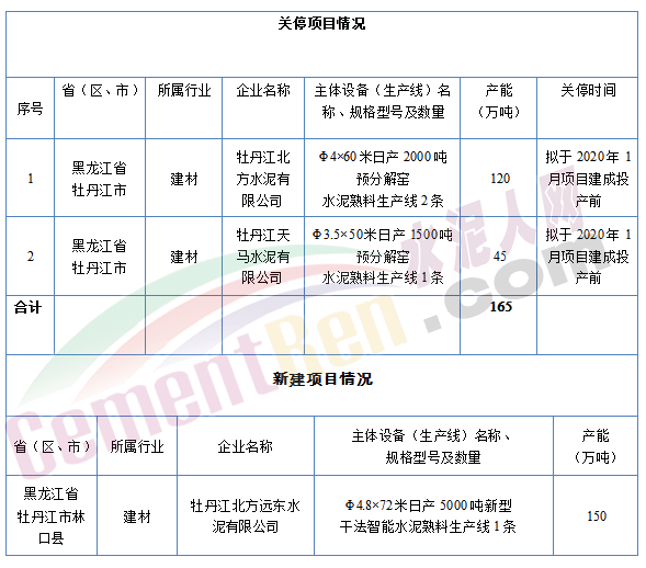 公告稱:按照《國務院關于化解產能嚴重過剩矛盾的指導意見》(國發〔2013〕41號)、國務院辦公廳《關于促進建材工業穩增長調結構增效益的指導意見》(國辦發〔2016〕34號)、以及《工業和信息化部關于印發部分產能嚴重過剩行業產能置換實施辦法的通知》(工信部產業〔2015〕127號)的有關規定,牡丹江北方遠東水泥有限公司利用北方水泥有限公司所屬牡丹江北方水泥有限公司、牡丹江天馬水泥有限公司擬關停的3條水泥生產線熟料產能(合計日產水泥熟料產能5500噸,已列入2020年關停計劃),制定了新建日產5000噸新型干法智能水泥熟料生產線項目產能置換方案,經我委審核并報請黑龍江省人民政府同意,予以公告。