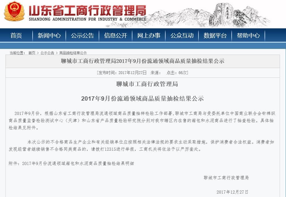 結(jié)果顯示,2017年9月份,根據(jù)山東省工商行政管理局流通領(lǐng)域商品質(zhì)量抽樣檢驗(yàn)工作部署,聊城市工商局與受委托單位中國(guó)商業(yè)聯(lián)合會(huì)針棉織商品質(zhì)量監(jiān)督檢驗(yàn)測(cè)試中心(天津)和山東省產(chǎn)品質(zhì)量檢驗(yàn)研究院分別對(duì)聊城市轄區(qū)內(nèi)在售的水泥商品進(jìn)行了抽查檢驗(yàn)。