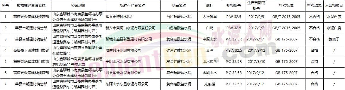 水泥商品質(zhì)量抽檢結(jié)果明細(xì)