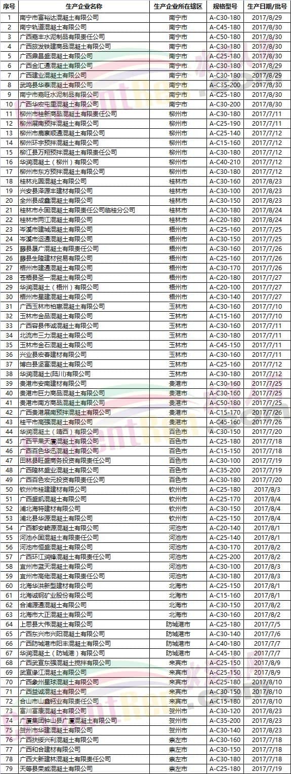 據(jù)水泥人網(wǎng)了解,此前也有部分地區(qū)抽檢出水泥成品的氯離子超標(biāo),其不合格原因與原料,燃料的氯離子的含量不無(wú)關(guān)系。而近日廣西壯族自治區(qū)質(zhì)量技術(shù)監(jiān)督局公布的《關(guān)于2017年廣西預(yù)拌混凝土產(chǎn)品質(zhì)量聯(lián)合監(jiān)督抽查情況的通報(bào))顯示2017年共抽取全區(qū)87家預(yù)拌混凝土企業(yè)生產(chǎn)的87批次產(chǎn)品。合格產(chǎn)品79批次,不合格產(chǎn)品8批次,不合格產(chǎn)品檢出率為9.2%,不合格項(xiàng)目為抗壓強(qiáng)度。
