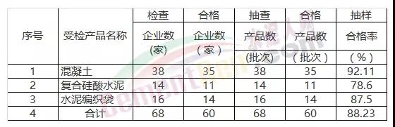 2017年第3季度我局主要抽取了預拌混凝土、復合硅酸鹽水泥、水泥包裝袋等3類68批次產(chǎn)品。現(xiàn)將抽查情況通報如下: