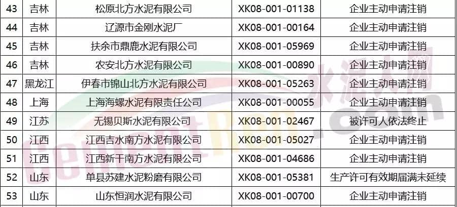 【水泥人網(wǎng)】昨日(25日),質(zhì)量總局發(fā)布公告2018年第13號,關于注銷南通東日鋼鐵有限公司等企業(yè)工業(yè)產(chǎn)品生產(chǎn)許可證的公告,其中涉及水泥企業(yè)204家。