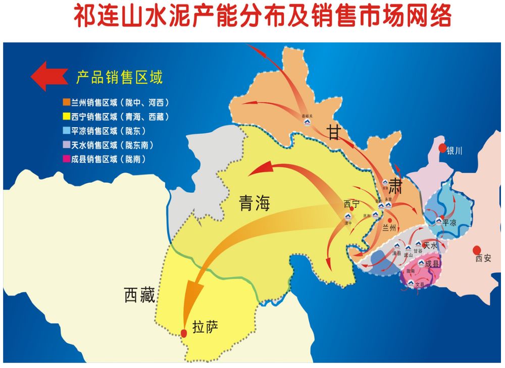 從祁連山水泥銷售市場網絡圖可以看出,祁連山水泥在西藏區域早有市場分布,布局西藏地區是勢在必行。