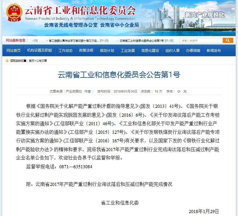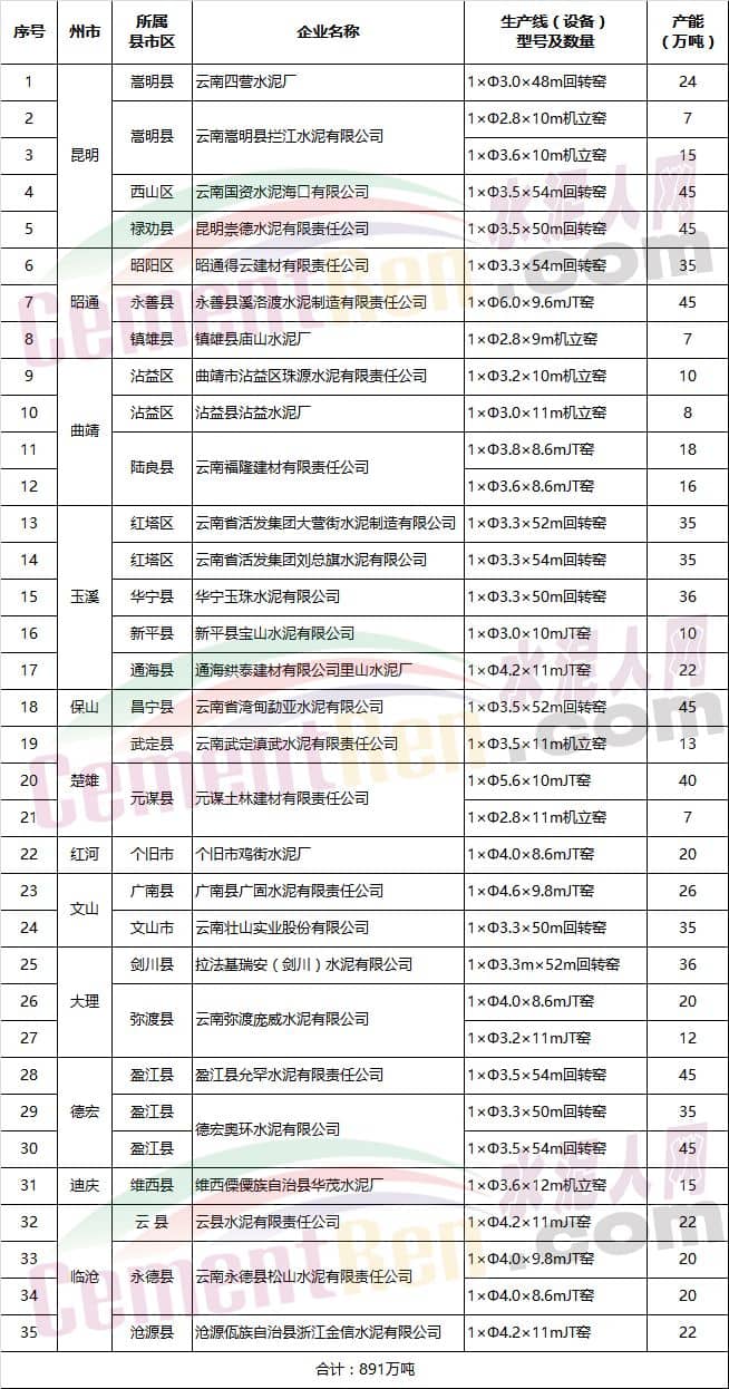 【水泥人網】昨日(30日),云南省工信委發布1號公告,公布2017年產能嚴重過剩行業完成淘汰落后和壓減過剩產能企業名單。水泥行業共計淘汰落后產能891萬噸。 2017云南水泥行業落后產能淘汰清單 備注:淘汰產能涉及昆明、昭通、曲靖、玉溪、保山、楚雄、紅河、文山、大理、德宏、迪慶、臨滄等12個州市35家企業。
