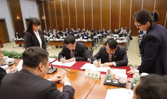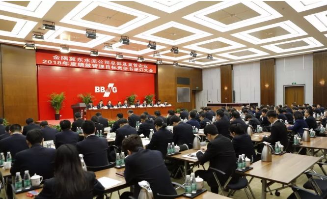 會上,公司副總經理劉素敏宣讀了部分企業由金隅冀東水泥直接管理的文件精神和2018年績效管理目標責任書編制說明,公司財務總監任前進宣讀了總部部門2017年度考核兌現意見。公司黨委書記、董事長姜長祿與23家企業及15個總部部門簽訂2018年度績效管理目標責任書。朱長君、王川等6名同志作為企業及總部部門負責人代表先后表態發言。