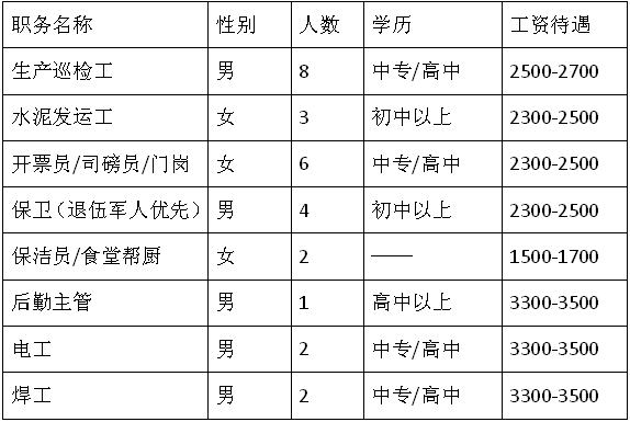 1、男45歲以下,女40歲以下,開票員/司磅員/門崗會電腦操作,電焊工應(yīng)屆畢業(yè)生也可;