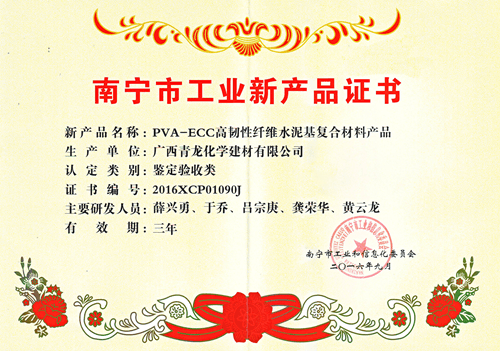 青龍集團公司薛博士指出,聚乙烯醇纖維具有很好的力學性能,耐酸堿腐蝕,纖維具有良好的分散性,纖維與水泥的親和性好,粘合強度高,對人體和環境無毒無害,因此將其應用到水泥基材料能充分改善混凝土的性能。聚乙烯醇纖維增強水泥基材料作為一種具有高韌性的延性混凝土,具有很大的吸收能量的能力,因此可以顯著改善混凝土結構的抗震性能,可用于抗震結構、抗沖擊結構、結構裂縫控制和耐損傷工程結構。基于此,青龍集團公司博士研發團隊通過利用聚乙烯醇纖維的特點和優勢,研究了聚乙烯醇纖維增強水泥基材料的性能和在外墻板、戶外家具、輕質藝術構件、三維效果地坪及仿大理石面板方面應用,并取得了較大的技術突破。該項目產品具有綠色環保、防水、強度高、耐候性好、防火性能好和裝飾效果獨特等優勢,被南寧市工信委推薦為工業新產品。