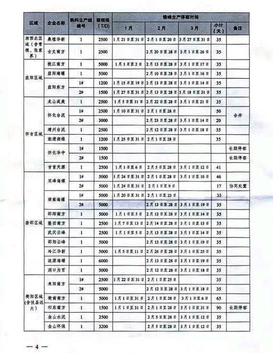 最近,湖南省水泥協(xié)會(huì)召開水泥錯(cuò)峰生產(chǎn)專題常務(wù)理事會(huì)議,根據(jù)該方案對全省56家水泥熟料生產(chǎn)企業(yè)的74條生產(chǎn)線的錯(cuò)峰生產(chǎn),制定了詳細(xì)的時(shí)間表和分區(qū)域督查執(zhí)行措施。今年一季度,在全省水泥熟料生產(chǎn)線錯(cuò)峰生產(chǎn)中,企業(yè)平均停窯35天,有協(xié)同處理城市生活垃圾任務(wù)的企業(yè)減半執(zhí)行。全省74條水泥熟料生產(chǎn)線錯(cuò)峰生產(chǎn)總計(jì)停窯達(dá)2696天。