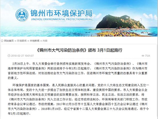 十三、遼寧錦州:實施首部地方性環保法規