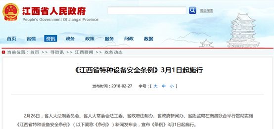 十五、江西:施行《江西省特種設備安全條例》