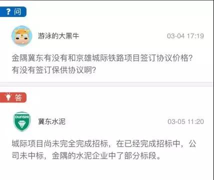 城際項目尚未完全完成招標,在已經完成招標中,公司未中標,金隅的水泥企業中了部分標段。