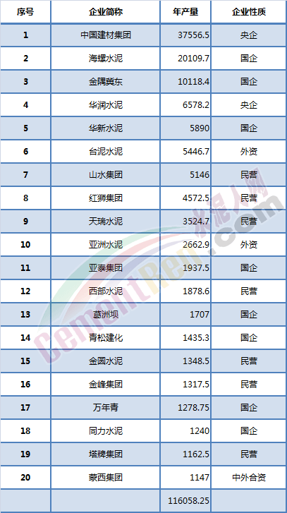 水泥熟料前二十強