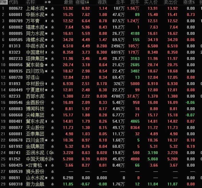 3月14日水泥板塊截圖