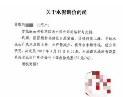 四川成都及周邊廠家20日發布通知,由于原材料供應趨緊,價格上漲導致水泥生產成本上漲明顯,從3月21日起所有袋裝水泥在原基礎上每噸上漲30元/噸,調整后低標袋裝到位價在410-430元/噸之間。