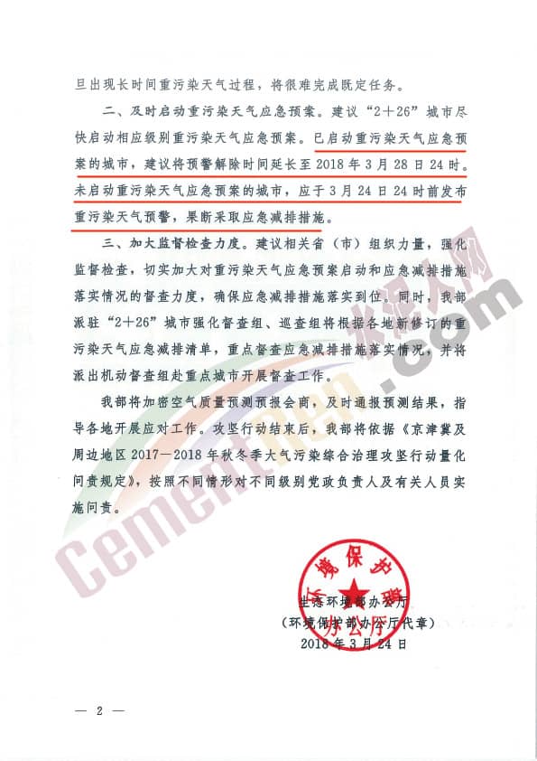 上述公函建議“2+26”城市盡快啟動相應級別重污染天氣應急預案。已啟動重污染天氣應急預案的城市,建議將預警解除時間延長至3月28日24時。未啟動重污染天氣應急預案的城市 ,應于3月24日24時前發布重污染天氣預警,果斷采取應急減排措施。同時要求各區域加大監督檢查力度,切實加大對重污染天氣應急預案啟動和應急減排措施落實情況的督查力度,確保應急減排措施落實到位。