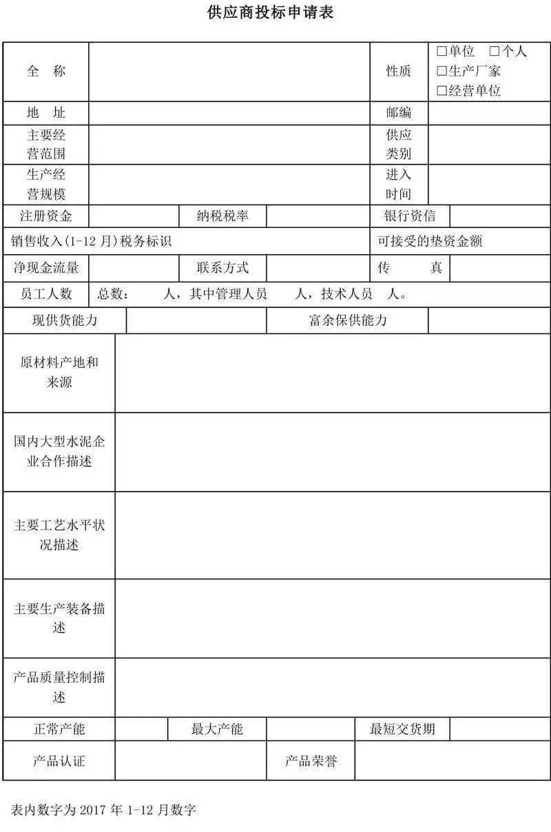 1.資料文件包括:企業主要資質證明文件(加蓋公章);生產制造型企業除提供主要資質證明文件外還需提交安全生產許可證、質量體系認證證書;聯系人基本信息;供應商投標報名申請表(見附件1)及近三年業績清單。