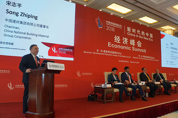 本屆論壇以“新時代的中國”為主題,圍繞高質量發展、供給側結構性改革與金融政策、高質量發展階段的中國制造、創新與未來等一系列重大議題進行探討。中國建材集團董事長、黨委書記宋志平應邀參加并在經濟峰會“社會責任型創新”單元作主題發言,諾華公司首席執行官萬思瀚、國家開發投資集團董事長王會生、沃爾沃集團總裁兼首席執行官馬丁·倫德斯泰特共同參加了討論。