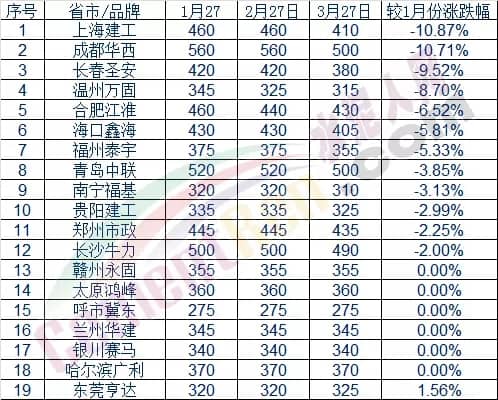 備注:以上價格數據來源于各區域市場報價僅供參考,如與實際成交價格不符請以實際成交價格為主