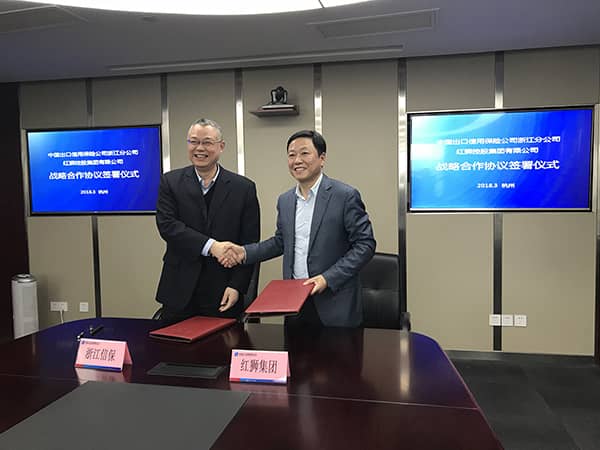 中國信保浙江分公司總經(jīng)理胡擁軍、紅獅集團董事長章小華代表雙方簽約。中國信保浙江分公司副總經(jīng)理林晨及相關(guān)部門領(lǐng)導(dǎo)、紅獅集團班子成員章旭喜等參加簽約儀式。