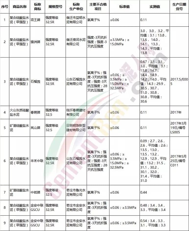 據了解,導致氯離子超標,強度不夠等不合格的主因可能是在水泥生產階段,相關工序控制不合理導致,也可能是在水泥存儲運輸階段管理不合理導致。