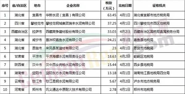 4月1日以來,各地陸續開出首張環保稅稅票。其中涉及多家水泥企業。