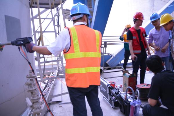 督查人員在約40米的高空進行污染物檢測