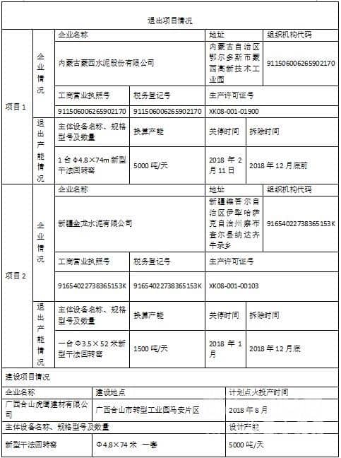 【水泥人網】根據《國務院關于化解產能嚴重過剩矛盾的指導意見》(國發〔2013〕41號)、《國務院關于發布政府核準的投資項目目錄(2016年本)的通知》(國發〔2016〕72號)、《國務院辦公廳關于促進建材工業穩增長調結構增效益的指導意見》(國辦發〔2016〕34號)以及《工業和信息化部關于印發鋼鐵水泥玻璃行業產能置換實施辦法的通知》(工信部原〔2017〕337號)精神,現對廣西合山虎鷹建材有限公司水泥熟料生產線項目產能置換方案進行公示,歡迎社會公眾進行監督。公示期為2018年4月16日—4月23日,公示期7天。如有異議,請于公示期內向我委原材料工業處反饋。