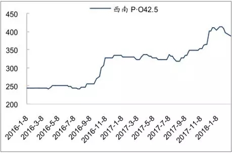 西南地區水泥價格小幅回落(單位:元/ 噸)