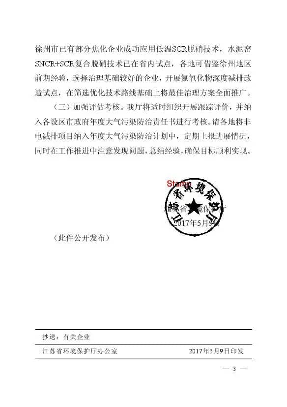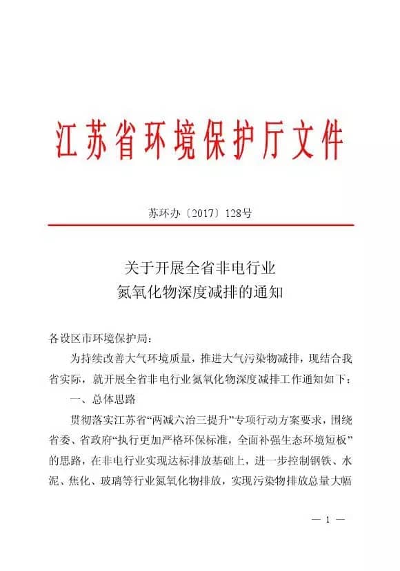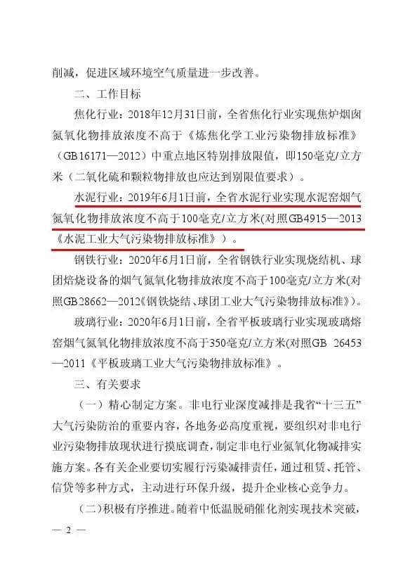 2017年5月,江蘇省環保廳印發關于開展全省非電行業氮氧化物深度減排的通知。通知要求,水泥行業2019年6月1日前氮氧化物排放不高于100mg/m3。這一限值要求與國家標準《水泥工業大氣污染物排放標準》中的NOx特別排放限值320mg/m3相比,收嚴幅度達到68%。意味著同樣情況下,現有一條生產線的氮氧化物排放總量相當于2019年6月1日后3~4條生產線排放總量。