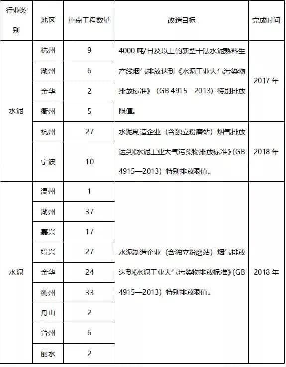 2017年3月17日浙江省發改委會同浙江省環保廳聯合印發《浙江省大氣污染防治“十三五”規劃》,規劃提出水泥行業廢氣清潔排放改造,推廣使用高效、成熟的脫硝技術和除塵技術,2017年底前,規模4000噸/日及以上的新型干法水泥熟料生產線煙氣排放達到《水泥工業大氣污染物排放標準》(GB4915—2013)的特別排放限值要求,2018年6月30日前,所有水泥制造企業(含獨立粉磨站)廢氣排放達到特別排放限值要求。