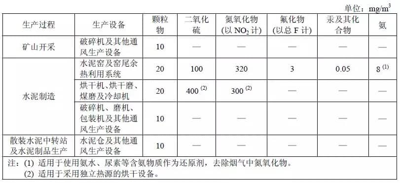 公告針對現有企業要求水泥行業現有企業自2018年10月1日起,執行二氧化硫、氮氧化物、顆粒物和揮發性有機物特別排放限值;(暨水泥工業大氣污染物排放標準GB4915-2013中針對于水泥行業的特別排放限值要求)