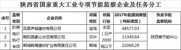 (三)造紙行業重點企業能耗限額和水泥行業階梯電價政策執行情況專項監察。14戶造紙企業和3戶日產2000噸以下水泥企業的專項監察由陜西省節能中心負責完成,出具監察報告和專項任務監察結果匯總表。