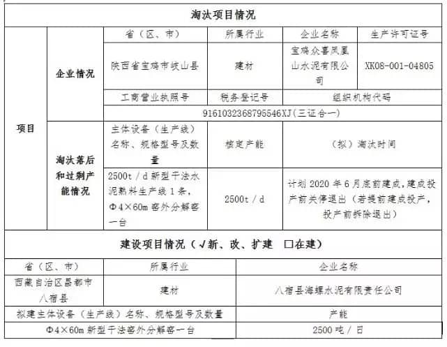 4月16日廣西省工信委發布《廣西合山虎鷹建材有限公司水泥熟料生產線項目產能置換方案》公示,產能置換方案詳情如下: