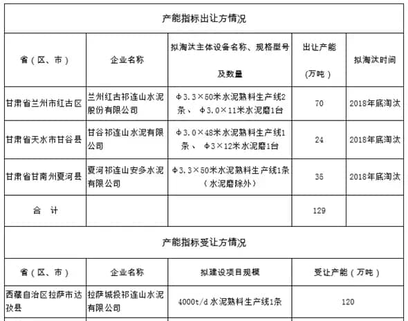 甘肅省工信委關于甘肅祁連山水泥擬淘汰水泥熟料產能轉出情況的公示如下: