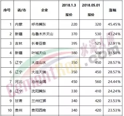 從價格方面來看,今年1-4月份廣東省、陜西省、江蘇省、云南省、河南省多區域企業連續發布漲價通知,從部分企業的漲幅來看已超過50%以上