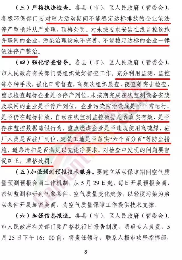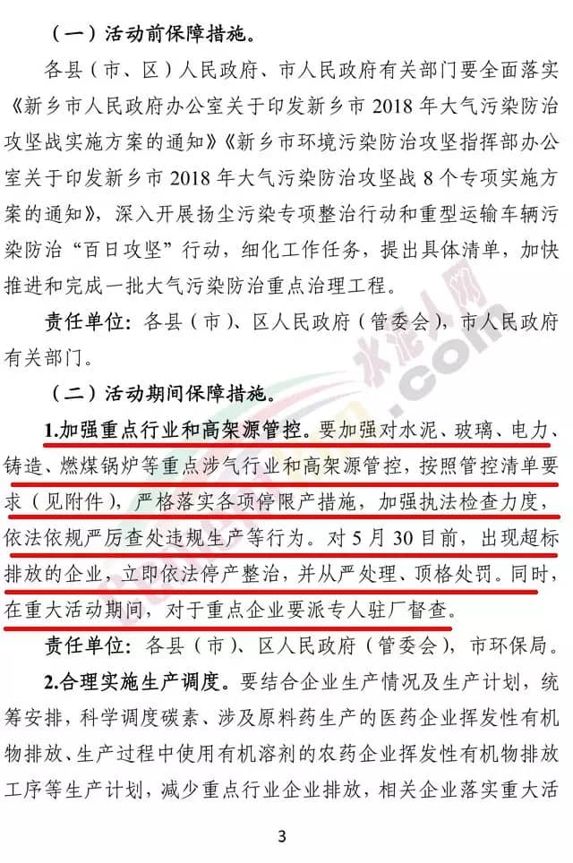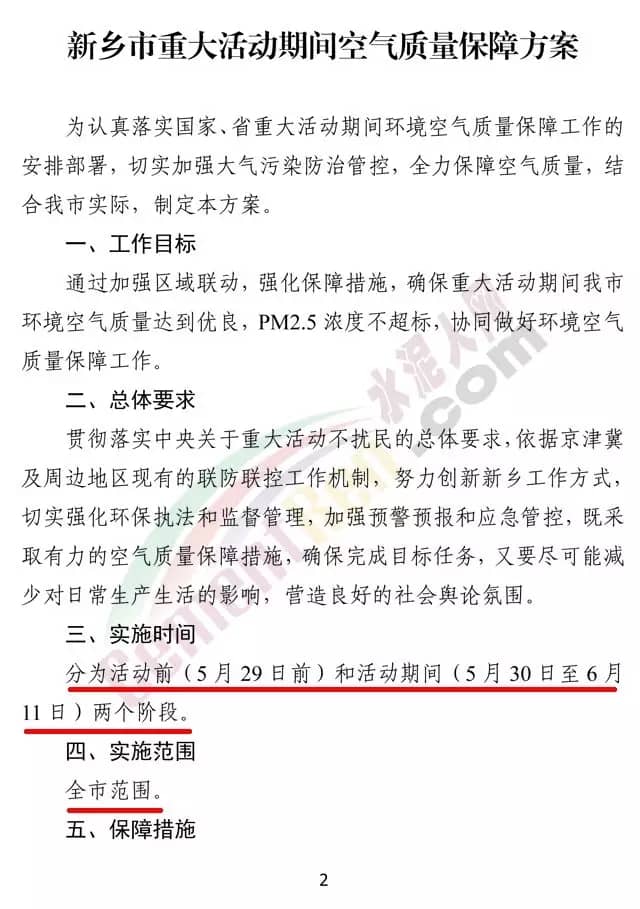 活動期間保障措施十三條,其中針對于水泥行業(yè)提出按照管控清單要求,嚴(yán)格落實(shí)各項(xiàng)停限產(chǎn)措施,加強(qiáng)執(zhí)法檢查力度,依法依規(guī)嚴(yán)厲查處違規(guī)生產(chǎn)等行為。對5月30日前,出現(xiàn)超標(biāo)排放的企業(yè),立即依法停產(chǎn)整治,并從嚴(yán)處理、頂格處罰。同時,在重大活動期間,對于重點(diǎn)企業(yè)要派專人駐廠督查。