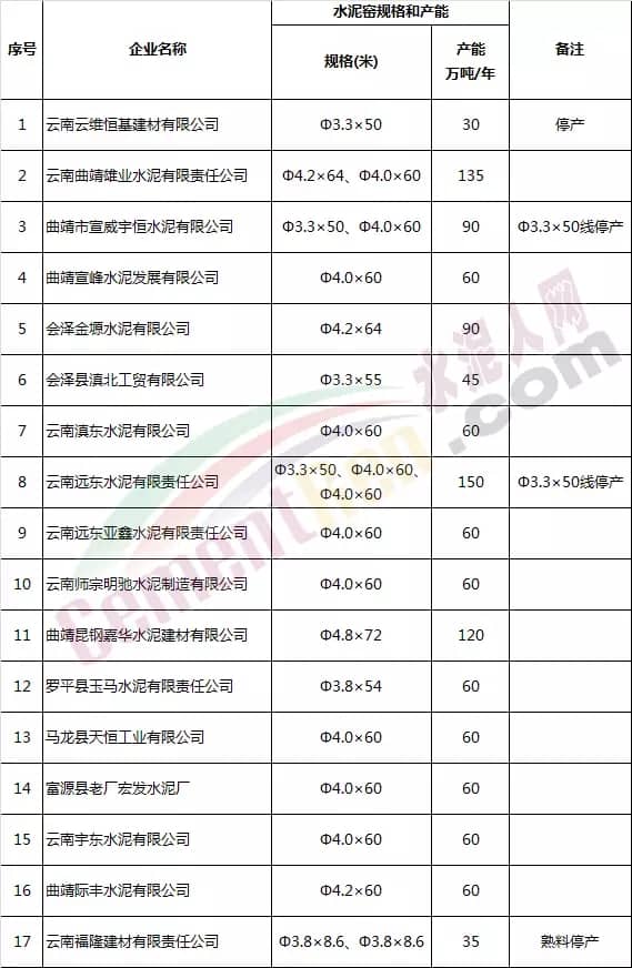 備注:以上數據來源水泥人網信息中心僅供參考,如與實際產能不符,請以實際產能為主。