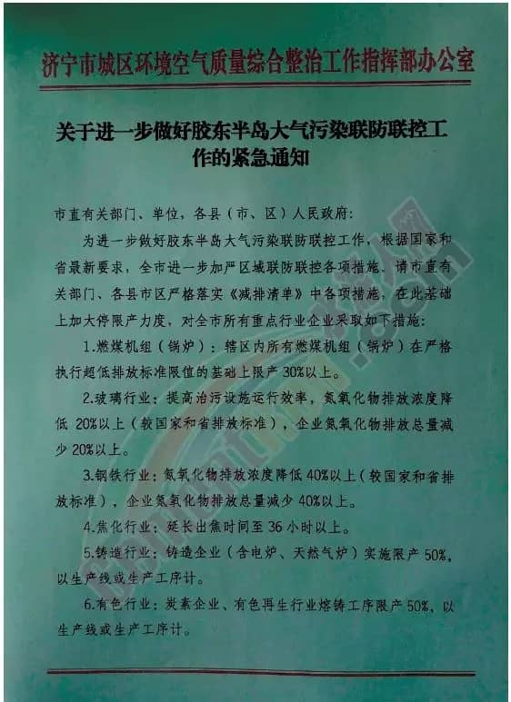 據水泥人網通訊員消息:6月2日濟寧市城區環境空氣質量綜合整治工作指揮部辦公室發布《關于進一步做好膠東半島大氣污染聯防聯控工作的緊急通知》。通知稱:為進一步做好膠東半島大氣污染聯防聯控工作,根據國家和省最新要求,全市進一步加嚴區域聯防聯控各項措施。要求濟寧市直有關部門、各省市區嚴格落實《減排清單》中各項措施,并在此基礎上加大停限產力度,對全市所有重點行業企業采取措施。