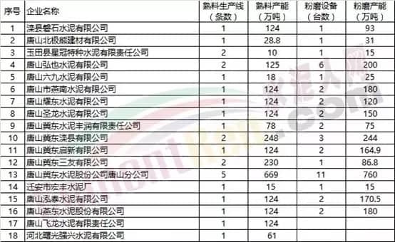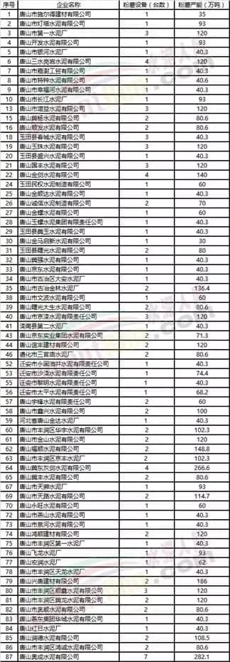 唐山市水泥企業(yè)名單