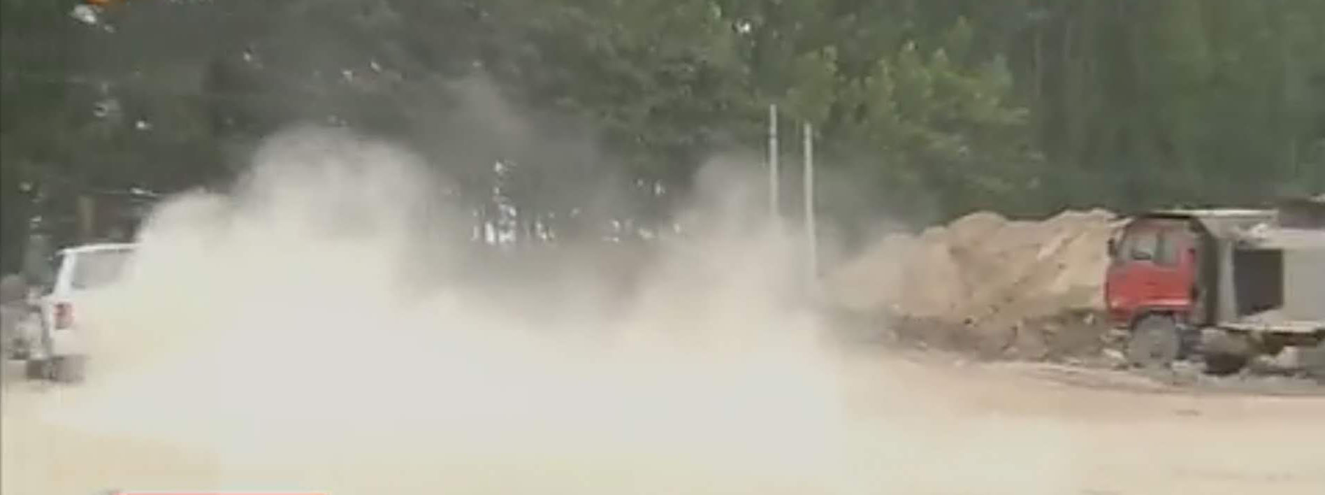由于地面未經(jīng)硬化,積塵嚴重,僅僅一輛汽車駛過,就掀起大量揚塵,近距離內(nèi)讓人無法睜開眼睛。而該碎石場距離村民住宅不足50米。