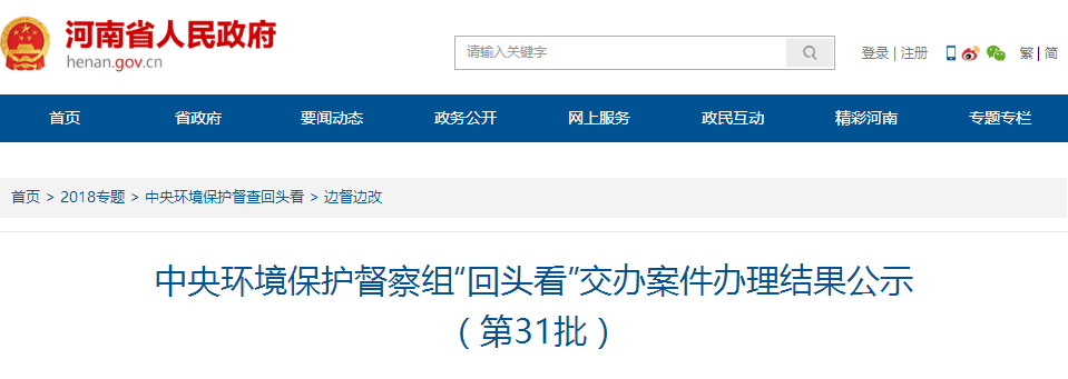 【水泥人網】日前,河南省人民政府官網發布《中央環境保護督察組“回頭看”交辦案件辦理結果公示(第31批)》名單,其中涉及天瑞集團、同力水泥等水泥企業,詳情如下: