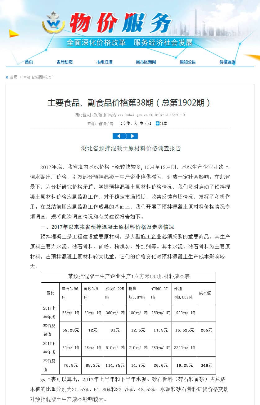 2018年7月13日,湖北省人民政府網(wǎng)站發(fā)布《湖北省預(yù)拌混凝土原材料價(jià)格調(diào)查報(bào)告》,報(bào)告稱2017年底,湖北省境內(nèi)水泥價(jià)格上漲較快較多,10月至12月間,水泥生產(chǎn)企業(yè)幾次上調(diào)水泥出廠價(jià)格,引發(fā)部分預(yù)拌混凝土生產(chǎn)企業(yè)停供減虧,造成一定社會影響。